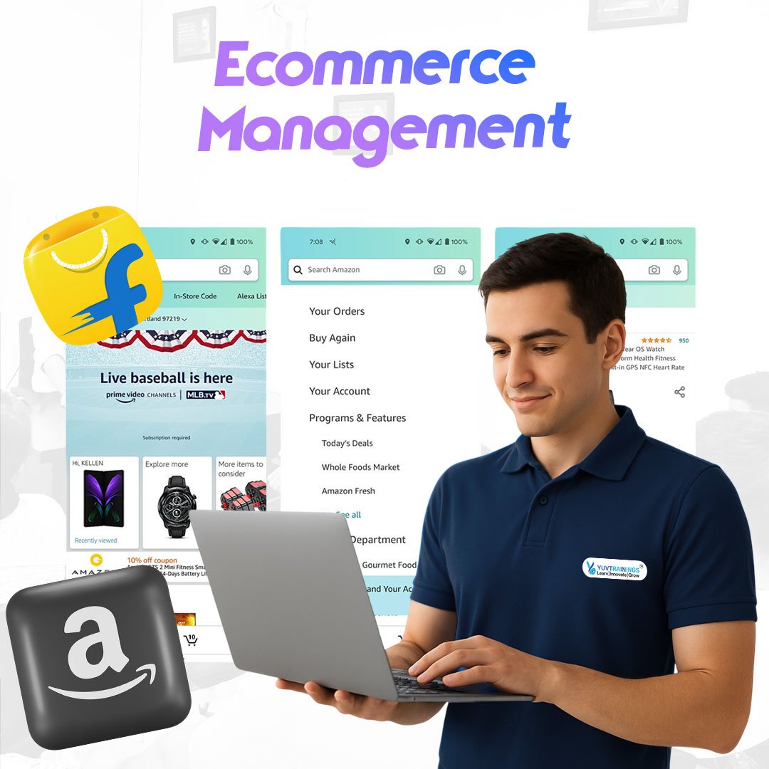 The YUVTRAININGS E-Commerce Management Program is designed to help you go from beginner to expert — covering every stage of building, managing, and growing a successful online business. Each module blends real-world learning, hands-on projects, and industry tools used by professionals.